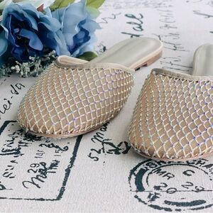 Reformation Melly Flat Mesh Jelly Mule in Fawn Rhinestone Mesh Size 8 / 7.5