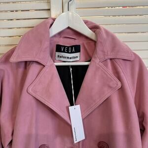 Reformation Veda Ashland Pink Suede Trench Coat