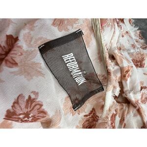 Step into effortless elegance with this stunning Reformation wrap maxi dress. Made from 100% viscose, this lightweight beauty drapes like a dream and flatters every curve. The romantic pink and red floral print sets a soft, feminine tone, while the ruffled trim, high-low hemline, and wrap-front design add a flirtatious edge. The short sleeves feature subtle tiered detailing for added charm, and the side tie cinches the waist perfectly.