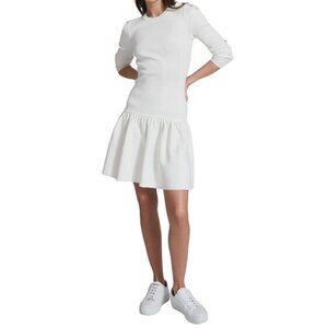 NWT Reiss Charlotte Flippy Knitted Ruffle Hem Mini Dress White L