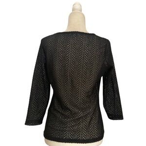 Reiss Lennox Top Scoop Neck Semi Sheer Herringbone Pattern in Black