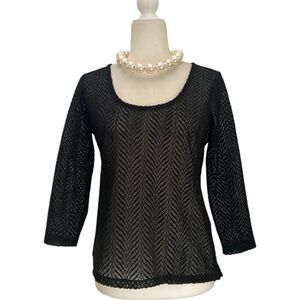Beautiful textured Semi sheer top featuring 3/4 Sleeves and a scoop neckline