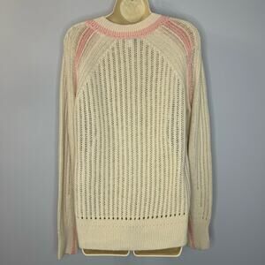 Reiss Vale Wool Blend Knitted V-Neck Sweater Cream Relax Fit Women's M
