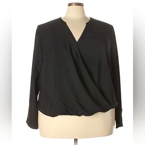 Remade Black Faux Wrap Long Sleeve Top – Size 3X