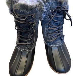 Stay warm and stylish with these gray fur-lined boots. Perfect for cold weather, these boots offer comfort and durability. Brand new. Never worn. I tried them on. They are super cute. I just never worn them. I really need to clean out my closet. lol. My loss because, these really are cute on! See images.