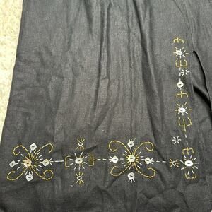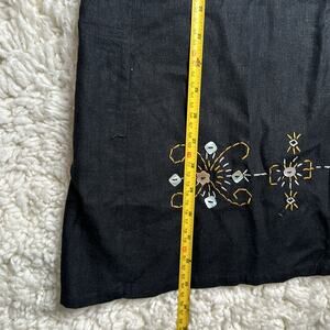 Requirements Linen Blend Black Midi Skirt Embroidered Details Beaded Design O3