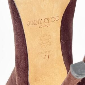 Vintage Jimmy Choo Chocolate Brown Suede Knee High Pointed Toe Heeled Boot