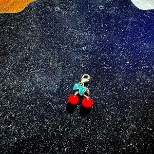 Elevate your jewelry collection with this Retro Cherry Charm, a dangle charm that exudes timeless elegance. Crafted from sterling silver with a 925 metal purity, it features an eye-catching combination of red and green hues, set in a classic round shape that pays homage to vintage charm designs. This unisex piece, originating from the United States, is ideal for a multitude of occasions, from birthdays to anniversaries, making it a versatile addition to any bracelet or necklace. The charm's silver base metal ensures durability while maintaining a lightweight feel, perfect for daily wear or special events.