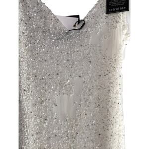 Retrofete Billie Dress Sleeveless Sequin Bodycon Knee Length Crystal White NWT M