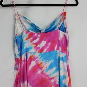 Retrofete Silk Marlene Cotton Candy Maxi Slip Dress Tie Dye Print High Slit M