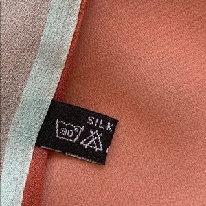 Fabulous beautiful vintage silk chiffon reversible scarf that is most unique. New never worn, the scarf is light blue on one side and a brick color in the other, the printed butterfly’s are embroidered together in the center making a shadow on the other side, Please see all photos for full description,
