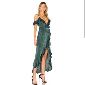 Revolve MAJORELLE Emerald Green Sausalito High Low Dress Ruffle Cold Shoulder