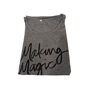 Revolve Making Magic Happen T-shirt Sz L GRAY Cursive Letters Preppy Boho Casual