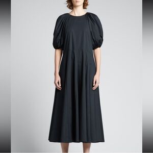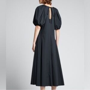 Round neckline with tie keyhole at back Elbow-length puff sleeves with elastic cuffs