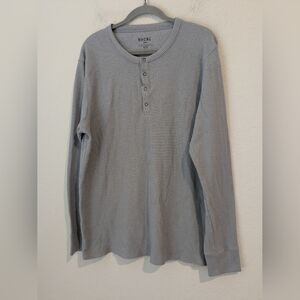 Rhone Grey Button-Snap Cotton Waffle Knit Thermal Henley Size XL Cozy Lounge