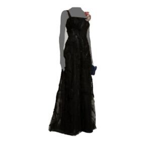 Rickie Freeman Teri Jon Black Gown Floral Strap Sleeveless Maxi Size 10