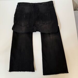 Risen Black Distressed Wide Leg Crop Raw Hem Plus Size Jeans 1X