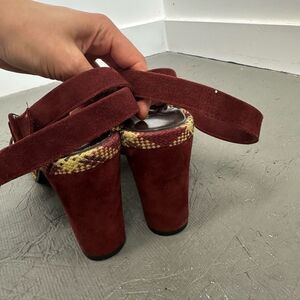 Robert Clergerie Burgundy Red Suede Plaid Platform Strappy Heel Sandals Size 39