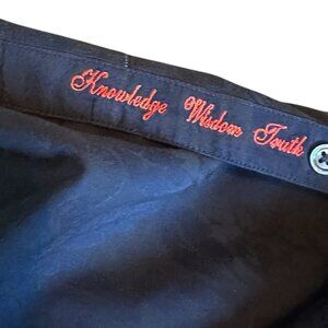 Embroidery on inside bottom button panel