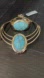 Stunning jewelry set by Robert Lee Morris, necklace and cuff bracelet. Features a vibrant turquoise stone wrapped in elegant gold wire. Ideal for a chic look. Necklace new with tag $148, bracelet new but has no tag $98.