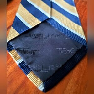 Robert Talbott Vintage Necktie. Gold, Blue, White Diagonal Stripe.