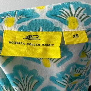 Roberta Roller Rabbit Green White Yellow Print Pintuck Cotton Tunic Top Size XS