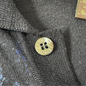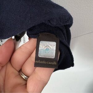 Roberto Cavalli Polo Shirt 100% Wool Knit Navy Blue Mens Medium