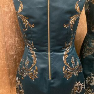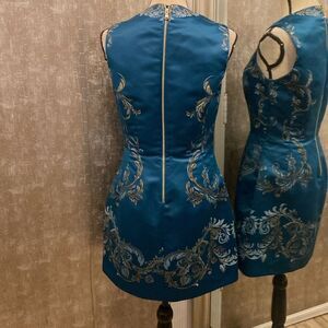 Roberto Cavalli Elegant teal and Gold Floral mini dress, US6