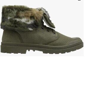 Rocket Dog Pilot Boot in a sleek olive. Feature a low block heel measuring between 3/4 to 1 1/2 inches, perfect for everyday wear. The upper fabric material offers durability and can be worn up or folded down, while the medium width accommodates a standard size foot. NEW WITH BOX.