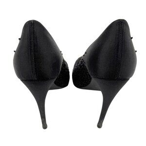 Roger Vivier Black Satin Embellished Peep Toe Heels - Size 5