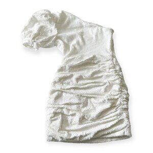Ronny Kobo Eden One-Shoulder Minidress in White Sequins, Size XS, New with tag