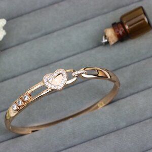 Romantic and radiant, this rose gold bangle features a sparkling heart centerpiece with crystal accents, perfect for expressing love and style.