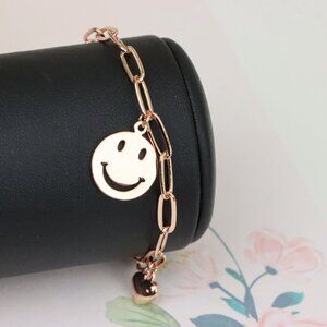 "Rose Gold Smiley Charm Bracelet with Heart Dangles, XPBL1149