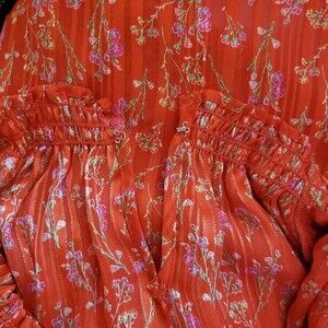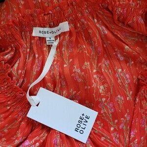 Rose + Olive Short Sleeve Gold Metallic Thread Ruffle Sleeve Floral Print Blouse/Top