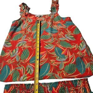 Excellent pre-loved condition summer vibes rose + olive set outfit. Pants and tops. 97% polyester and 3% spandex.