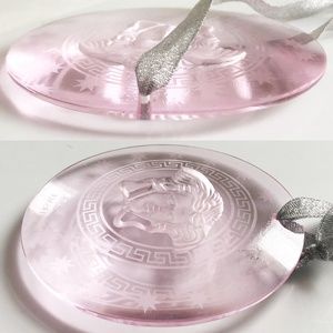 Authentic, preowned Rosenthal x Versace Pink Medusa Head Crystal ornament. Comes with metallic silver ribbon/measures appx 3.65in diameter. Preowned with minimal signs of use/wear: some light scratches. No box but will be carefully packaged for shipment.