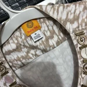 Chic blazer with unique pattern. Features decorative neckline and buttoned front. Ideal for versatile styling.