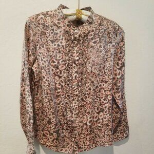 Ruby Rd Women’s Size 10 Blouse Roll Tab Sleeve Animal Print Pink Gray Ruffle Top