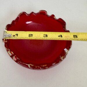 Ruby Red Murano Art Blown Glass Trinket Bowl 4.5” Glows Uv Bullicante Vintage