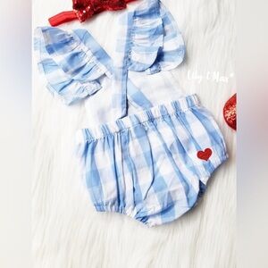 Sparkley red baby shoes with sequins & bow embellishment. Purchased on Etsy. Handmade & worn once with my baby girl’s Dorothy costume. See additional bow headband listing. (Romper still available for purchase on Etsy at Lily & Max Co…not included with this sale as it is embroided with my daughter’s name)