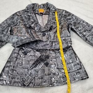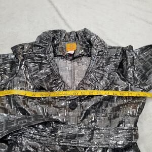 Ruby Road Petite Silver Black Metallic Ruffle Collar Lightweight Jacket Women 4