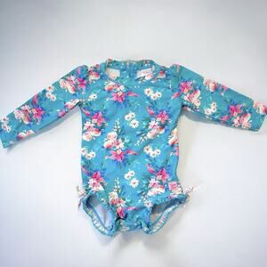 Ruffle Butts Toddler Baby Girl Swimsuit 18-24M Floral Long Sleeve UPF 50+ Swim