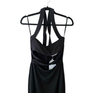 Rumer Sorrento maxi dress Black cut out Halter strappy gown Revolve L