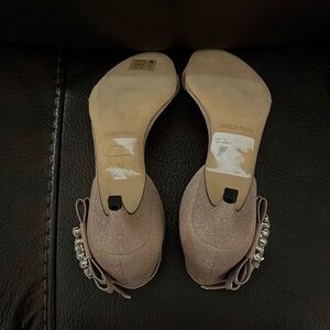 SALE!!! Sergio Rossi Glitterama Blush Pink Gem Logo Strappy Kitten Heel