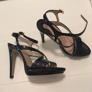 Never worn! Also, have a matching bag to go with it, see my Closet. Color is dark midnight blue lacquer, very pretty.