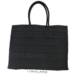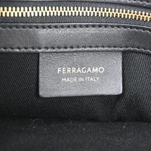 SALVATORE FERRAGAMO Signature Shoulder Tote Bag Canvas Leather Black GHW 57RJ307