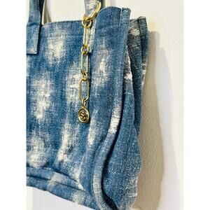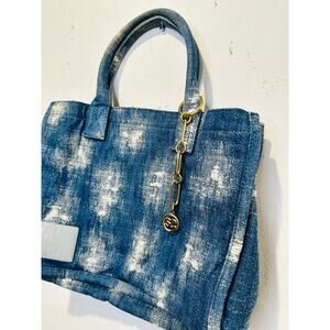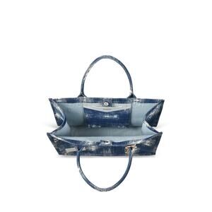 The SANDRO Denim Tie‑Dyed “Kasbah” Grunge Tote is a spacious, stylish carry‑all that radiates casual chic. Crafted from artisanal tie‑dyed denim in cool blue tones and accented with leather trim, it’s designed with practical appeal—featuring twin top handles, a secure magnetic‑button closure, and easy‑access open interior pockets. Fully lined and thoughtfully sized at roughly 16″ W × 13″ H × 7″ D (41 × 35 × 18 cm), it’s roomy enough for a laptop and everyday essentials, yet remains effortlessly wearable over the shoulder or by hand . With its relaxed yet refined silhouette,