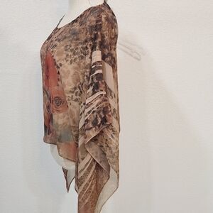 SANS Souci Cropped Boho Sheer Flowy Floral Loose Arm Top Size M