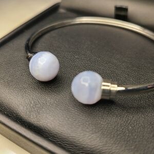 Tags: jewelry, bracelet, cuff, blue agate, rhodium plated, stainless steel, semiprecious stone, casual, versatile, minimalist