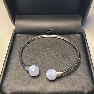 SAVVY CIE JEWELS Flexible Blue Lace Agate Cuff Bracelet, NWOT